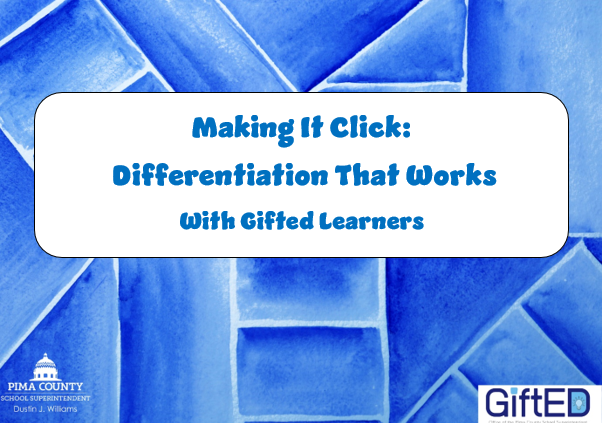 This virtual class is an introduction to the art of differentiation. We will be looking at the critical elements for success in today’s classrooms by exploring evidence-based strategies and user-friendly tools to seamlessly integrate differentiation practices and optimize teaching, learning, and assessment for all students, every day. The course will involve synchronous and asynchronous content and assignments. The entire course will take 20 hours and these hours can count towards the Arizona Gifted Endorsement. We will be using the book, Making Differentiation a Habit by Diane Heacox. Please be sure to purchase this book prior to the start of the course.