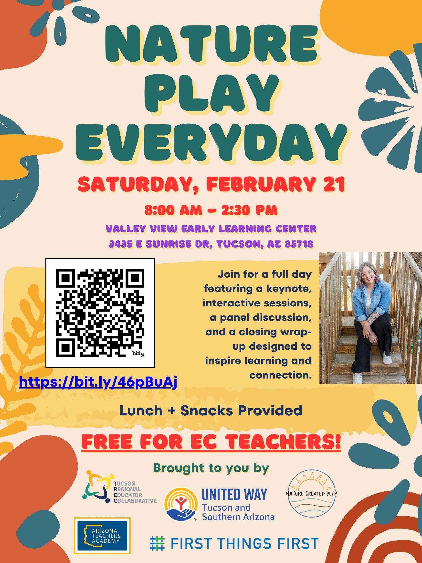 This FREE workshop, brought to you by TREC, ATA, the United Way of Tucson and Southern Arizona, Nature Created Play, and First Things First, is a full-day in-person experience centered on nature, inquiry, curiosity, and play. Specifically designed for those who teach 3–5-year-olds, Open to All.