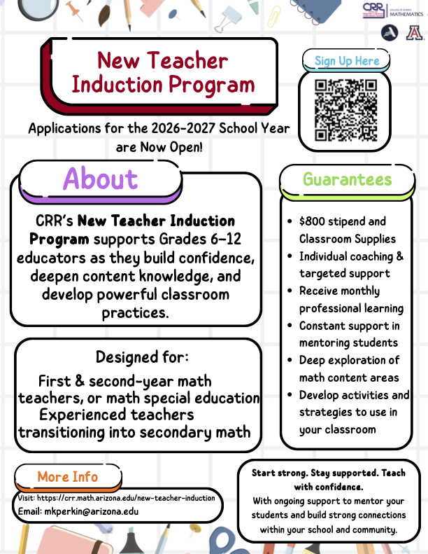 - For questions regarding this resource, please contact Center for Recruitment and Retention of Mathematics Teachers (CRR).